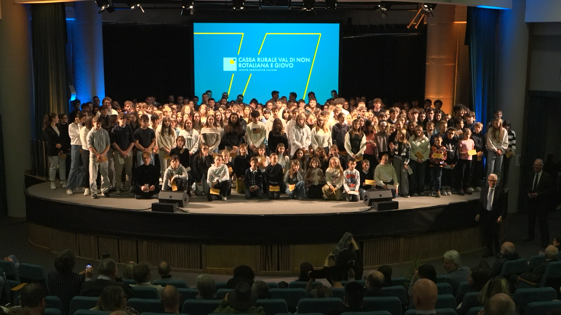 Auditorium del Polo Scolastico di Cles esaurito in ogni ordine di posti, ieri sera, per un evento tradizionale e molto significativo per la Cassa Rurale Val di Non Rotaliana e Giovo che, da sempre, è attenta alla formazione dei giovani.