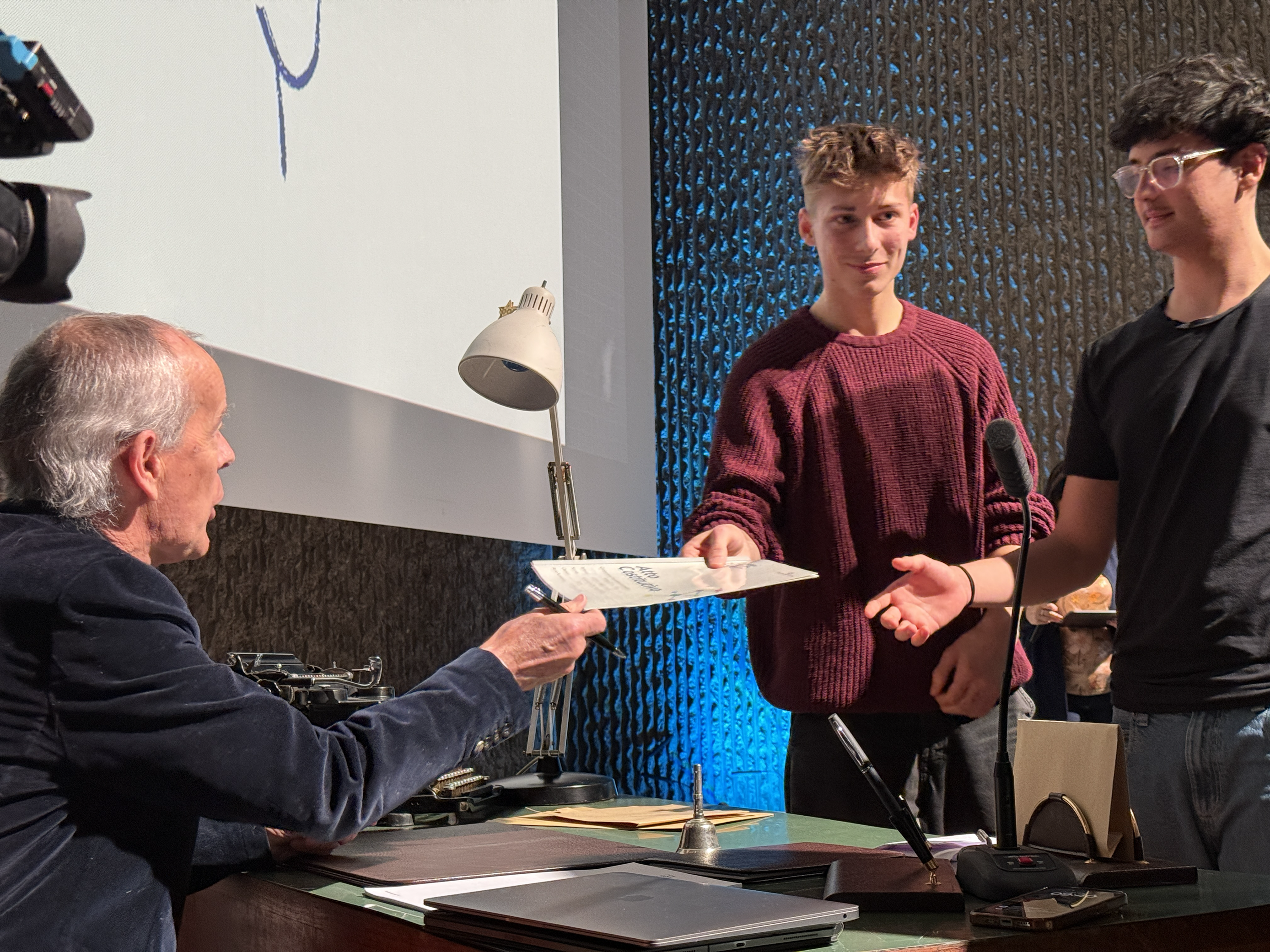 Intelligenza del futuro, promozione del territorio, marketing e sostenibilità sono i temi che identificano i progetti delle 14 cooperative formative scolastiche costituite quest’anno da altrettante classi terze di sei istituti superiori della provincia di Trento. Quattordici cooperative simulate, per un totale di 280 giovani soci e socie, che nei mesi scorsi hanno definito, votando in assemblea , il proprio nome, logo e, soprattutto, scopo sociale, ovvero il progetto di alternanza scuola-lavoro da sviluppare nel corso del biennio. E stamani, durante una cerimonia a loro dedicata in sala inCooperazione, si sono costituite formalmente con la firma dell’atto costitutivo da parte di tre “notai” d’eccezione il presidente della Federazione Trentina della Cooperazione Roberto Simoni, il direttore generale Alessandro Ceschi e la responsabile dell’Area Formazione e Cultura Cooperativa Jenny Capuano.