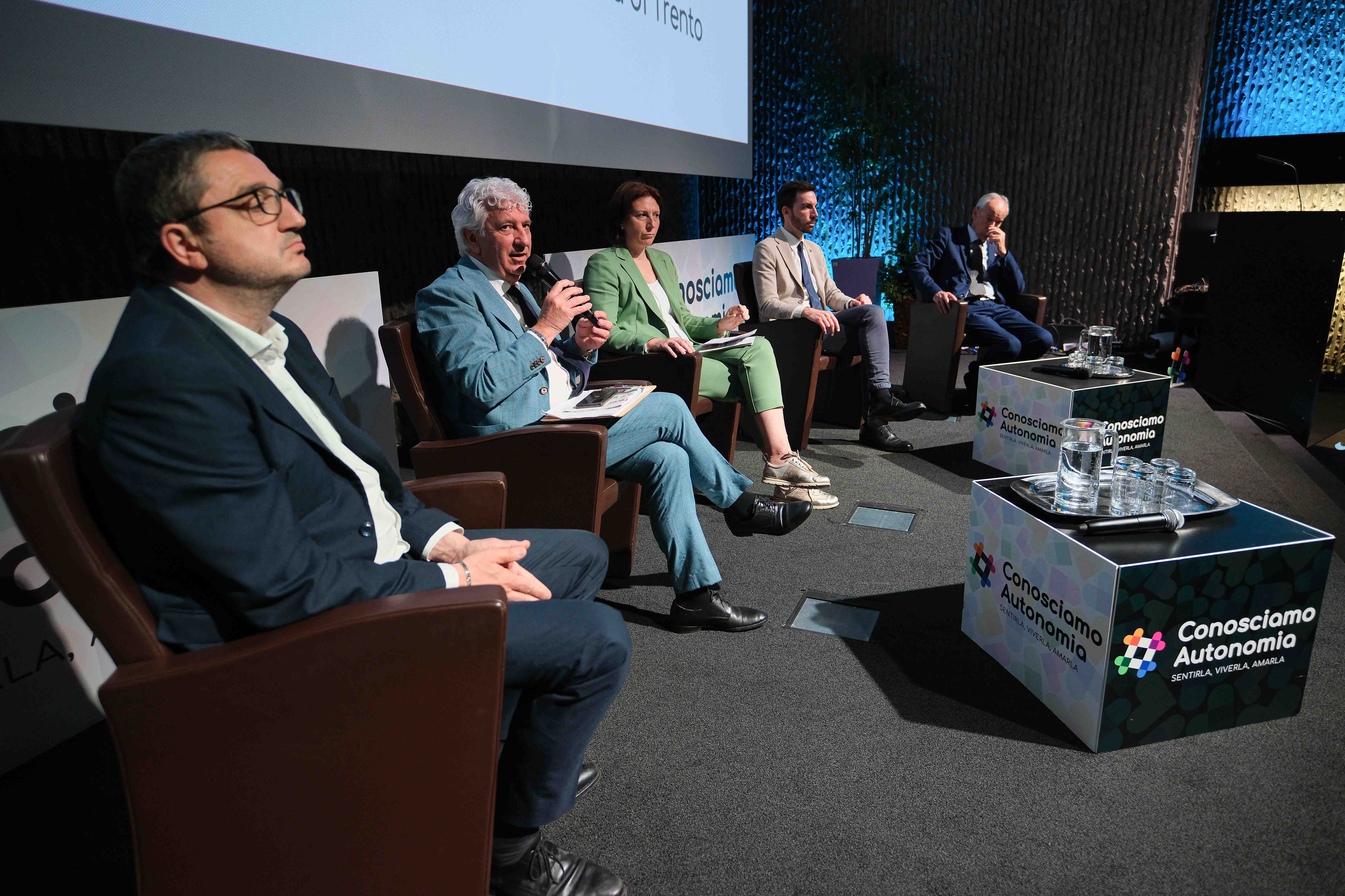 Spazio poi al talk show moderato dalla giornalista dell’ufficio stampa consiliare, Linda Pisani. Sul palco le voci autorevoli del presidente del Consiglio provinciale Claudio Soini, della vicepresidente Mariachiara Franzoia, del presidente della Provincia Autonoma di Trento Maurizio Fugatti, dell’assessore provinciale alla promozione della conoscenza dell’Autonomia Simone Marchiori e di Roberto Simoni, presidente della Cooperazione Trentina.