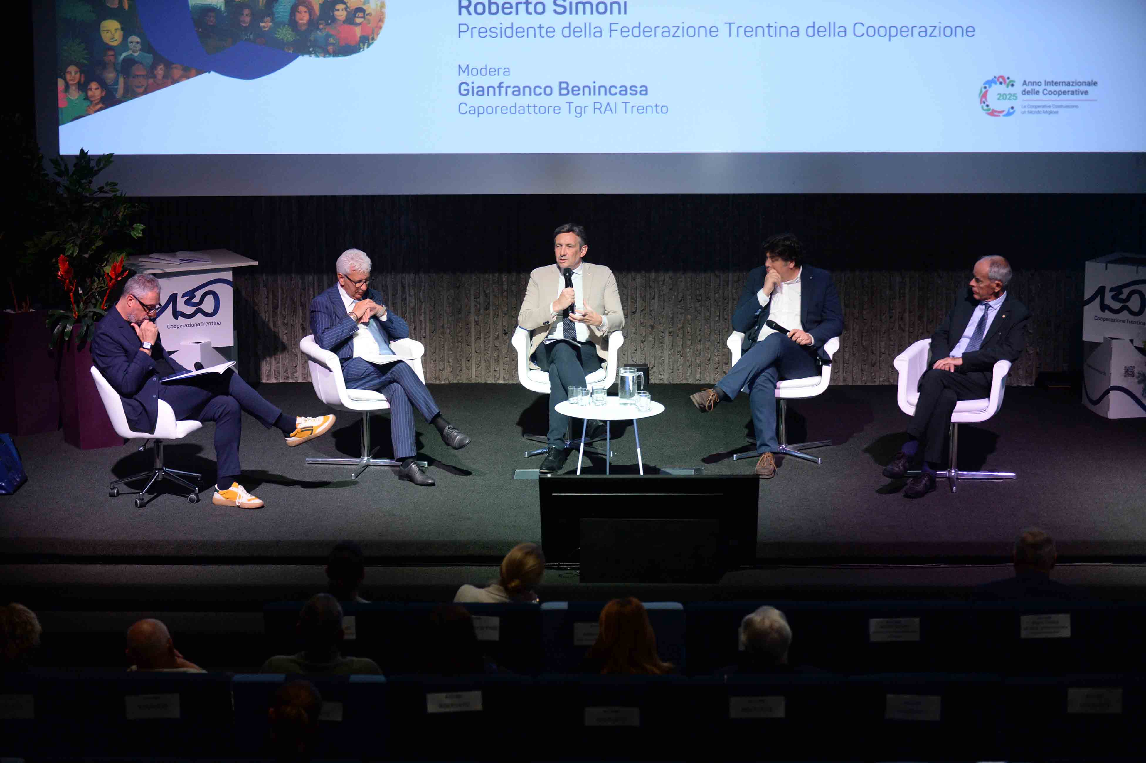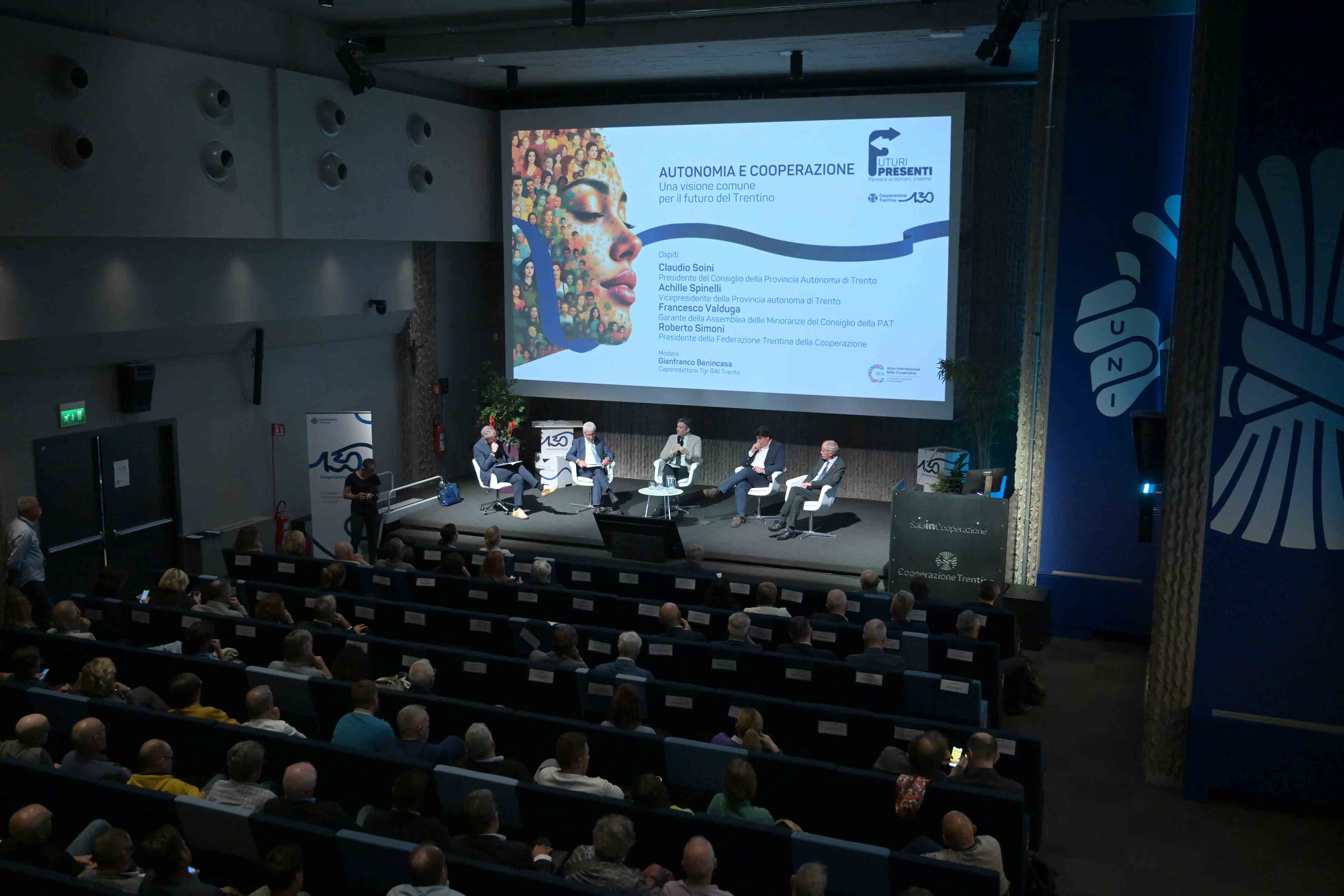 È seguita poi la tavola rotonda “Autonomia e Cooperazione, una visione comune per il futuro del Trentino”, che ha visto confrontarsi Achille Spinelli, vicepresidente della Provincia autonoma di Trento, Claudio Soini, presidente del Consiglio provinciale, Francesco Valduga, garante dell’Assemblea delle Minoranze, e Roberto Simoni, presidente della Cooperazione Trentina.