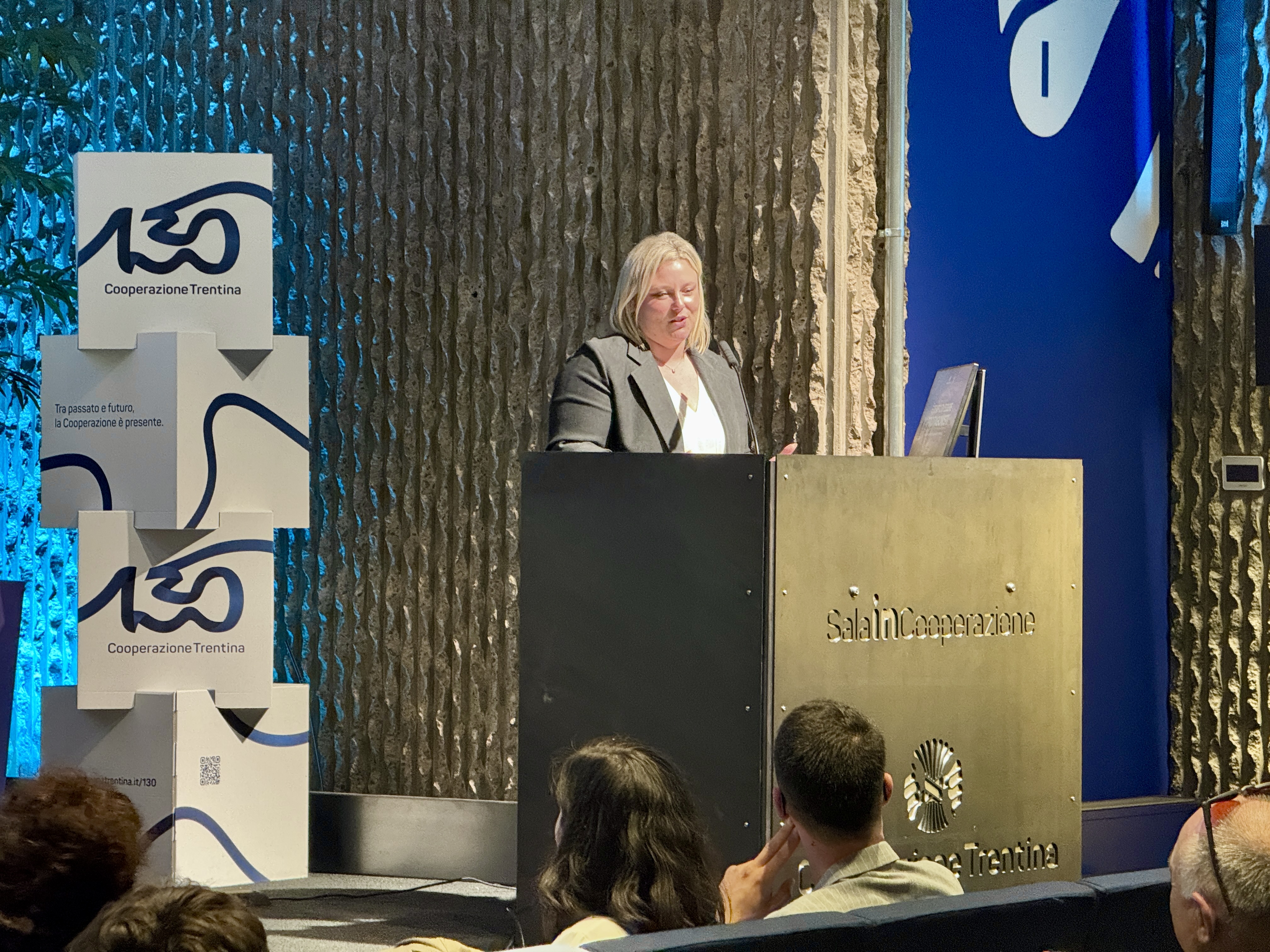 Alla parte pubblica hanno preso parte anche rappresentanti del Consiglio di amministrazione della Federazione Trentina della Cooperazione, tra cui Camilla Santagiuliana, vicepresidente del settore produzione lavoro e servizi ed Eleonora Da Ronco, presidente dell’Associazione Donne in Cooperazione che hanno richiamato l’importanza del coinvolgimento delle nuove generazioni.